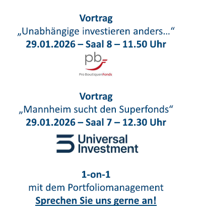Die auf dieser Website veröffentlichten Inhalte dienen ausschließlich der allgemeinen Information. Sie stellen keine Anlageberatung, keine steuerliche oder rechtliche Beratung sowie keine Empfehlung, kein Angebot und keine Aufforderung zur Abgabe eines Angebots zum Erwerb oder Verkauf von Finanzinstrumenten oder Fondsanteilen dar.